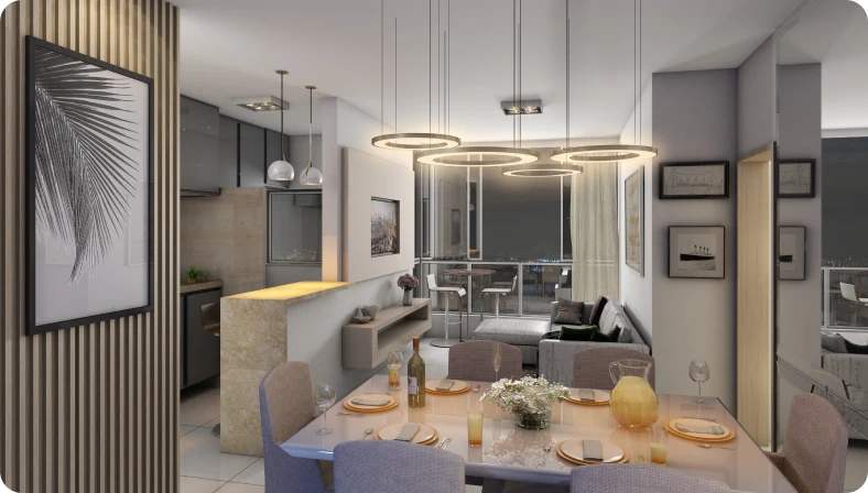 Apartamentos de 2 e 3 quartos com varanda gourmet e infraestrutura completa, em um projeto único na cidade.